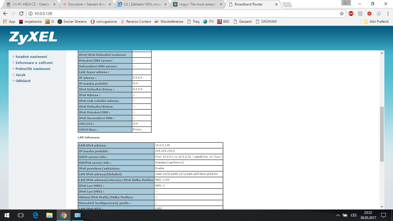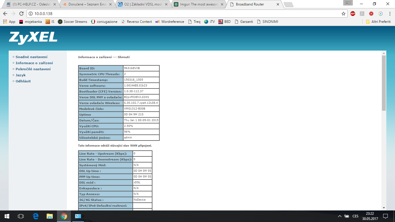 V minulém bydle jsem měl internet od O2. Teď jsem se přestěhoval, router jsem si vzal s sebou (je to model ZyXEL VMG1312-B30B, tady: https://www.o2.cz/osobni/techzona-modem ... -b30b.html).
