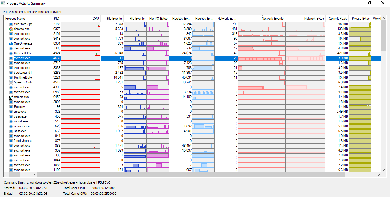 Postup stejný, jen místo Network Summary vybereš Process Activity Summary. Mělo by to vypadat nějak takto: