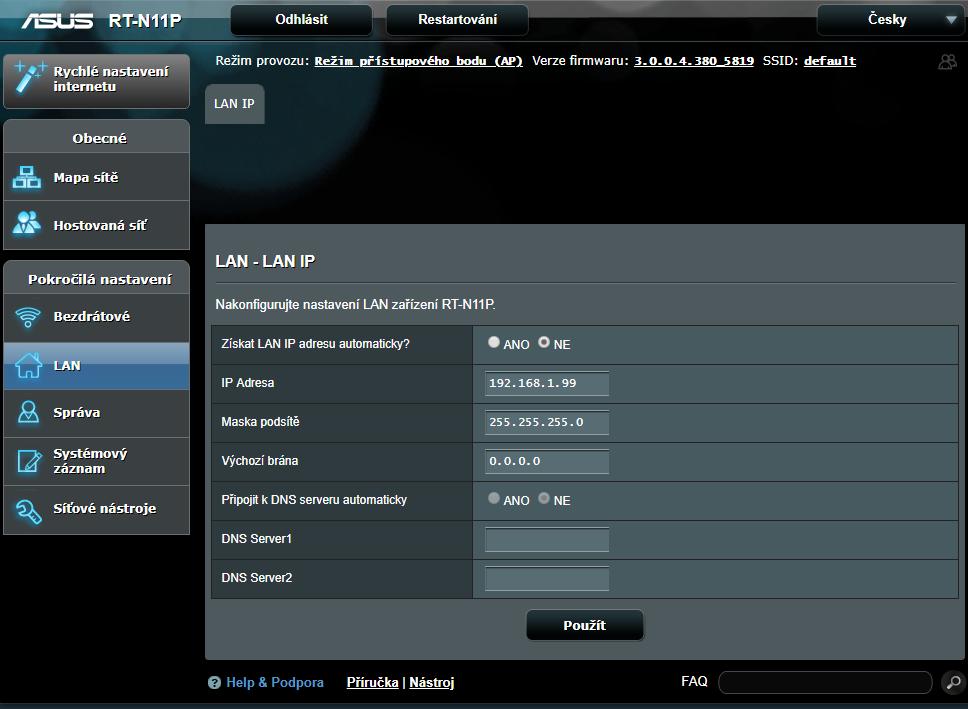 Dobre, jak se k tomu dostanu, zkusim nastavit jako access point. Snad to zvladnu nastavit. Dekuji.