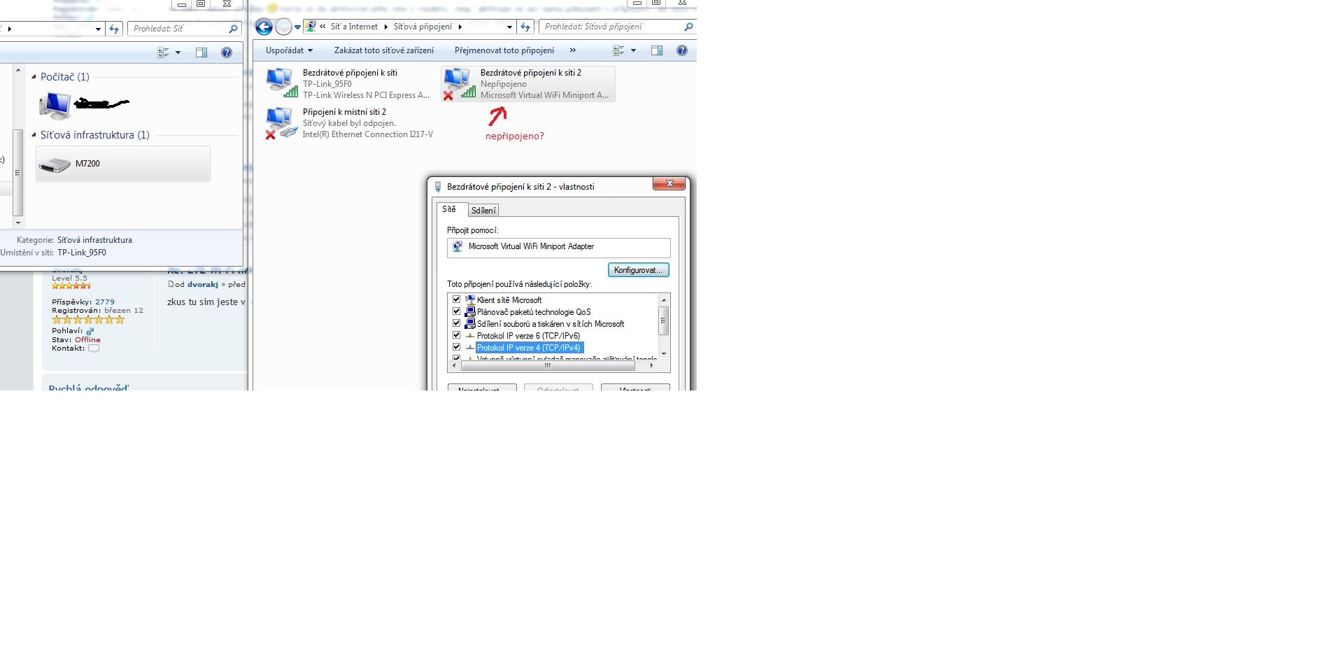 Má otázka je jak zprovoznit adaptér M7200, jelikož pc bude přestěhováno a bude nutné mobilní připojení. Má být adaptér viditelný ve správci zařízení i v usb řadičích?