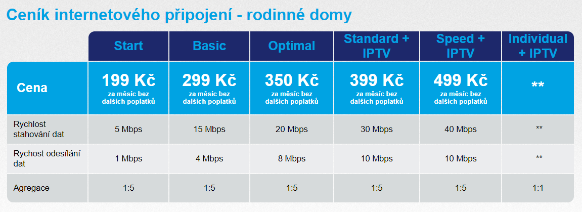 Bohužel je to vesnice, kde není moc providerů není. Je to pro rodiče, takže je to spíše na prohlížení internetu, než nějaké divoké hraní her a stahování.