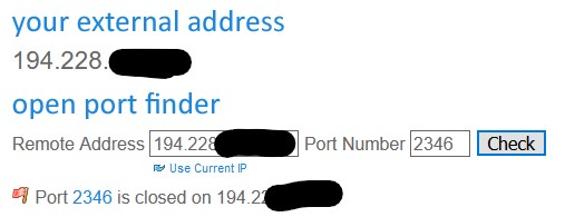 Zkoušel jsem jiný porty, výsledek stejnej. Zkoušel jsem, aby se zvenku připojovali na IPv6, nic. Připojit se k někomu jinýmu jde bez problému.