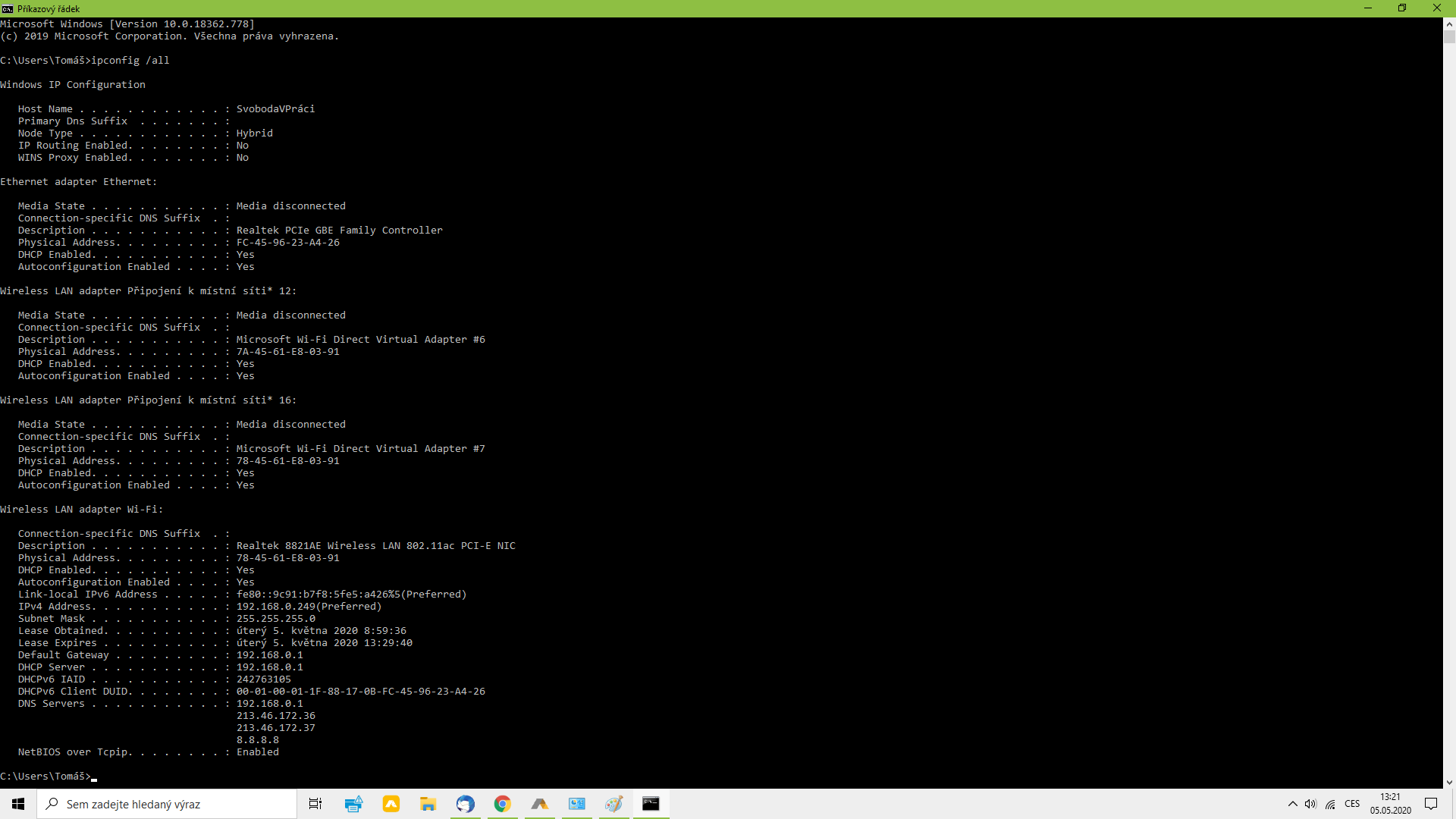 Dodatečně připojuji screen ip configu z příkazového řádku: