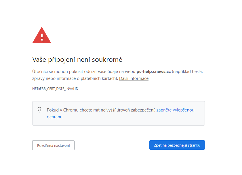 proč mi to odedneška píše: vaše připojení není soukromé?