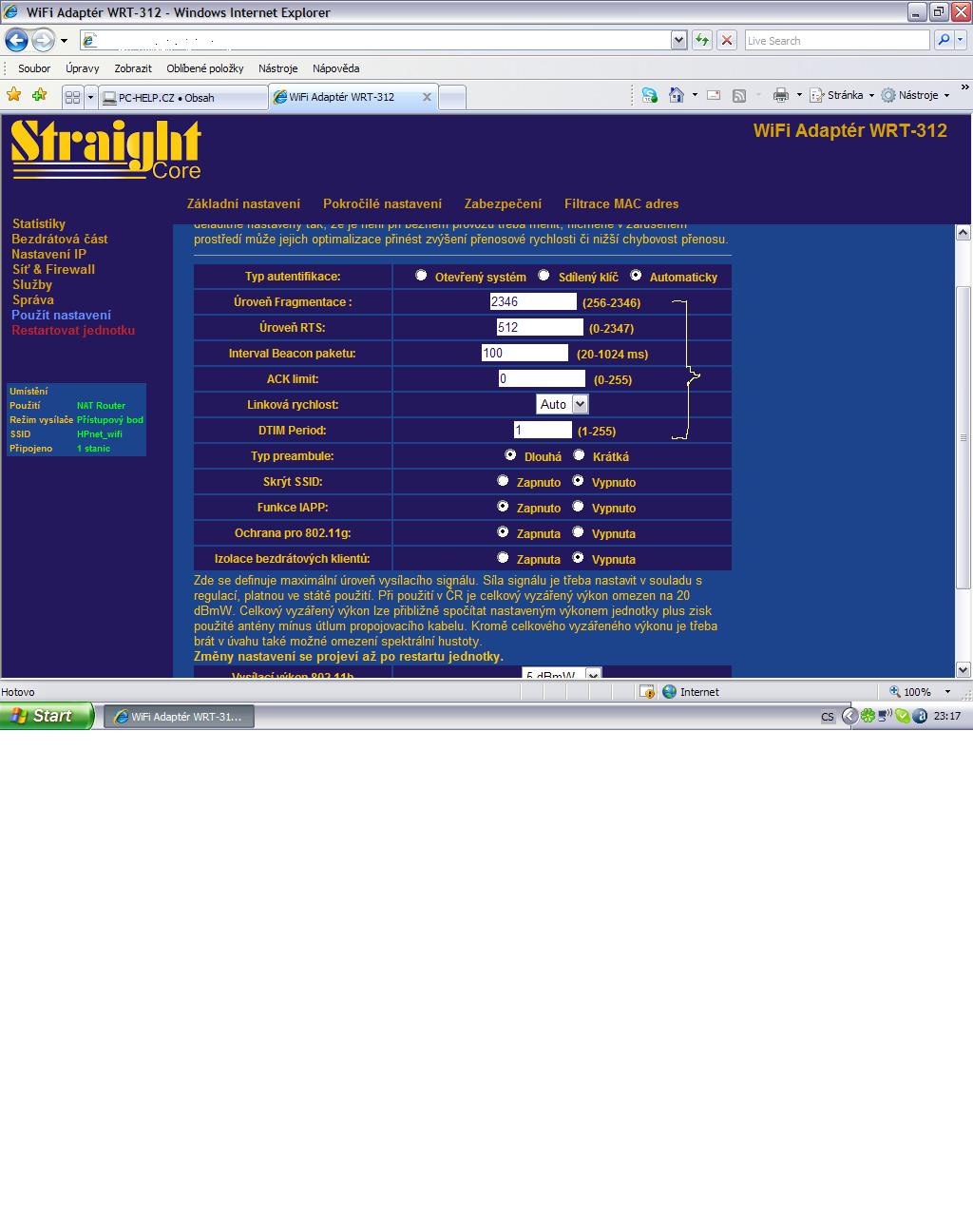 Zdravím.Potřebuji poradit s routerem.Nastavoval mi ho chlapík od firmy,co nám v paneláku zřizovali net.Niní jsem ho musel restartovat a nastavil si ho sám.Asi jsem někde ale něco opoměl,protože spadává spojení a při stahování to je docela pruda to furt obnovovat.Hodím sem screen.Mám pocit,jestli to není v těchto parametrech.Díky za případnou radu.