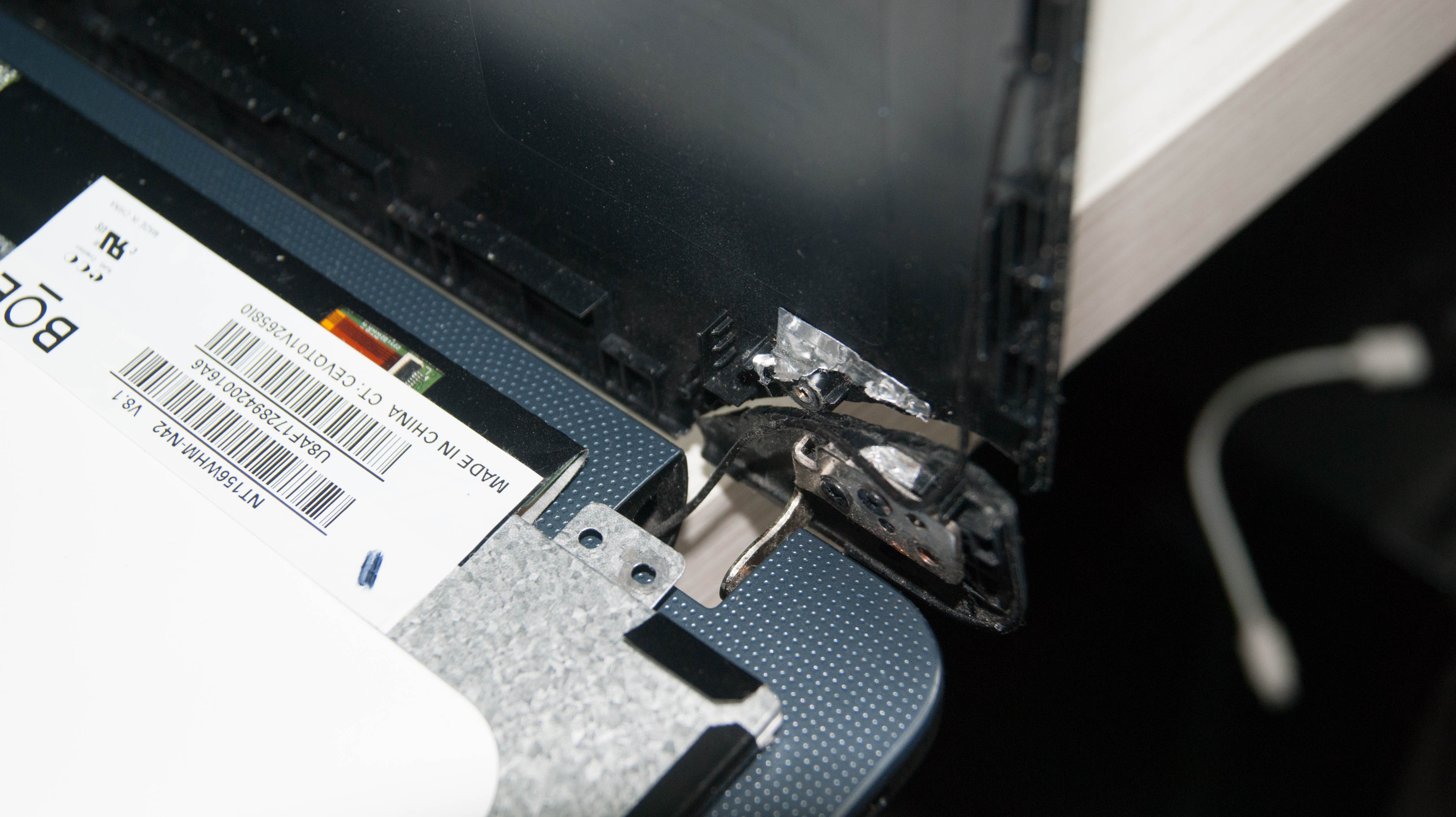 no problém, ktorý neviem ako vyriešim je, že na ntb je odtrhnutý roh, presne v mieste kde sú pánty.
