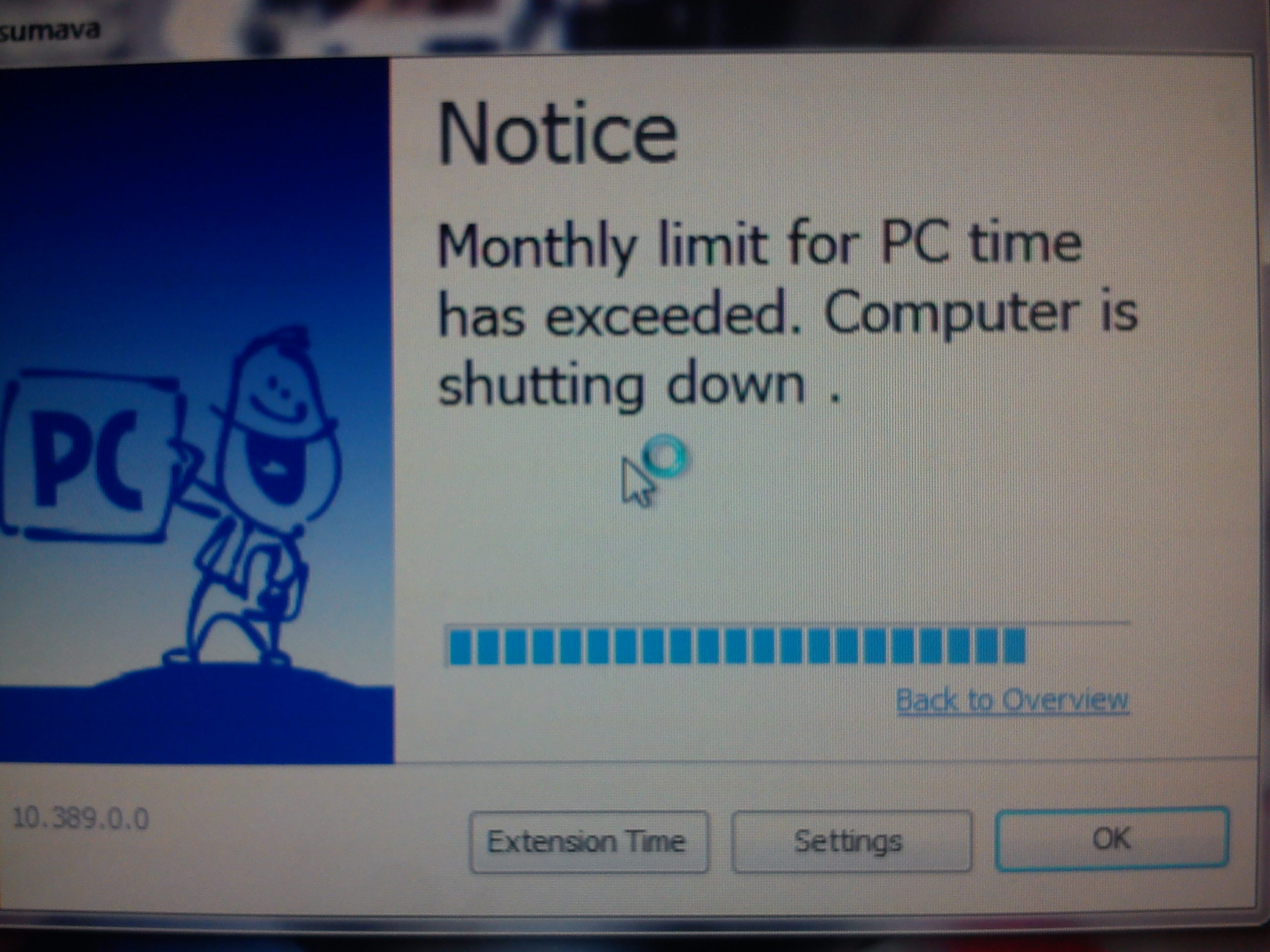 Dobrý den, dnes jsem zapnul počítač a hrál asi tak 5 hodin. Pak se mi z nenadání ukázala tabulka kde je napsáno anglicky něco v tom smyslu že mi vypršela lhůta na PC a je tam čára která když dojede tak se mi vypne PC. Než dojede mám možnost zmáčknout tlačítko "Extension Time", kde je políčko na heslo, na nějake TAN heslo... Vir nevim jestli to může být, protože jsem v ten den nic nestahoval... Prosím pomožte !!!!