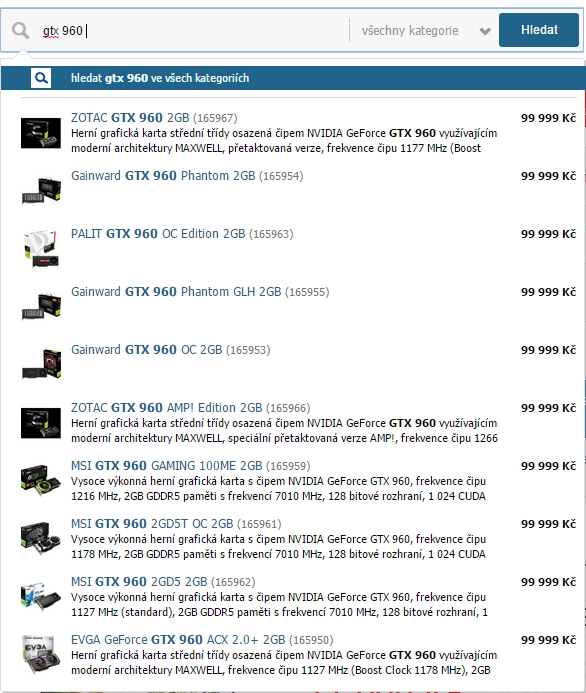 Ono zalezi jakou verzi chces, napr ZOTAC GTX 970 se da zase sehnat na czc pod 9 000 kc bohuzel napr MSI je zatim pres 10 000 a jeste nejakou dobu to urcite potrva.Spiker.cz píše:skládám bratrovi kompa, nakonec se přeci jen vyplatí spíše investovat do GTX 970, jenže ta cena poslední dobou jenom stoupá, dříve byla průměrná cena 9,7K a teď je 10,7K ... nevidí do toho někdo víc, nějaký zdejší prognostik, který by mi poradil, jestli se momentálně oplatí čekat jestli spadne cena, či koupit rovnou?