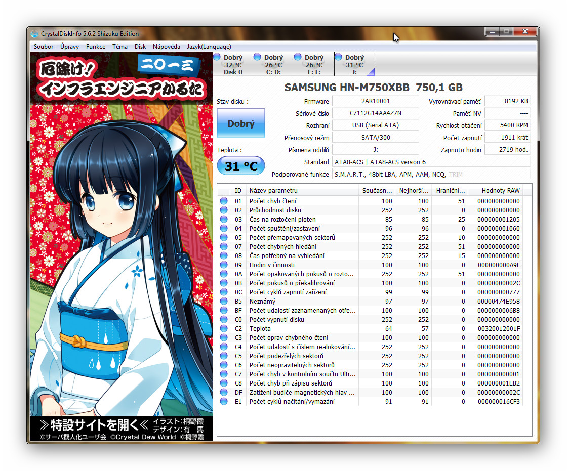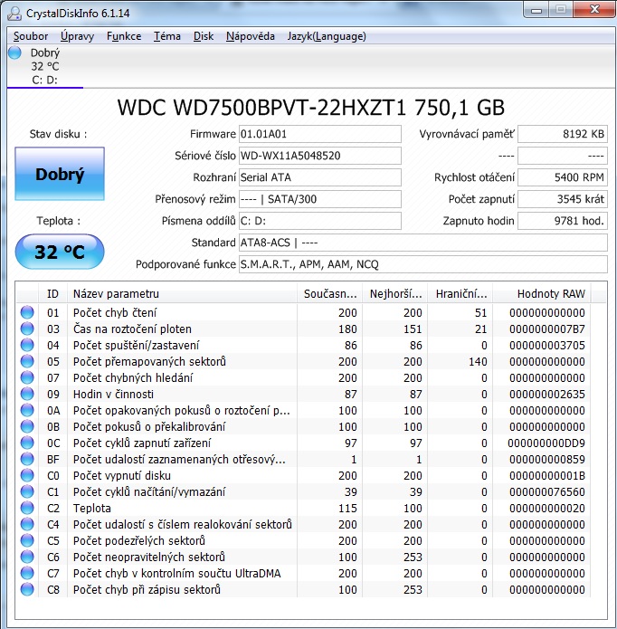 wattmetr píše:....Jde o disk v mém "zkušebním" PC, kde při poruše nehrozí žádná ztráta. Nemám ho od začátku životnosti, podle hodin a počtu zapnutí běhal dříve v nějakém serveru, ale přesto u mě už přes rok běhá naprosto spolehlivě a bez závad, stav se nezhošuje ...