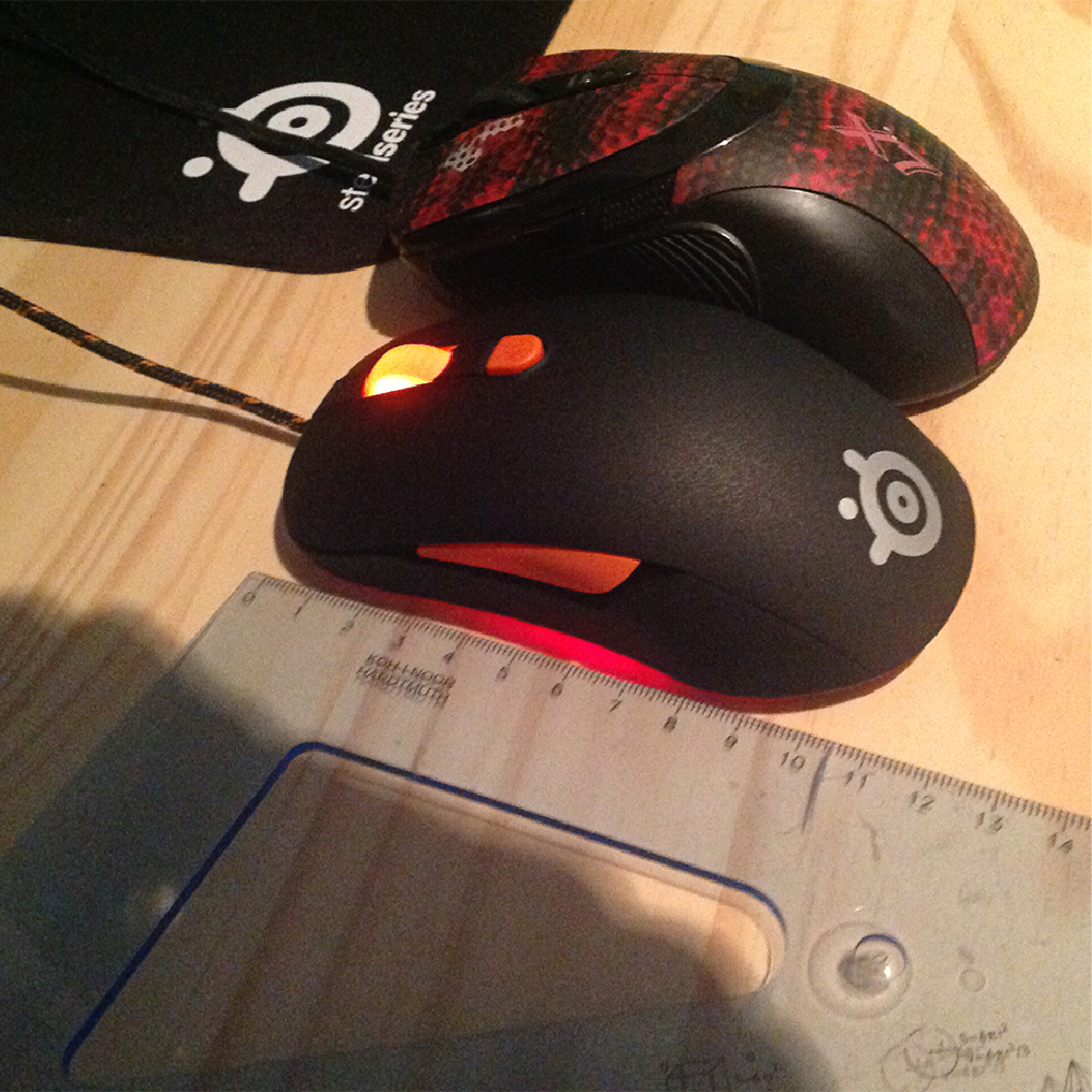 Tak konečně je myška doma. Na fotce porovnání se starou A4Tech F7. Kana v2 je popravdě trochu menší, ale drží se docela příjemně. V pozadí QCK+.