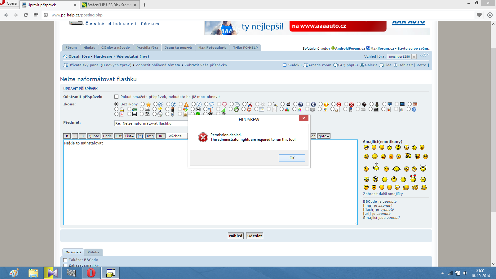 a když ji chci naformátovat a dám úplné formátování tak to nejde, ukáže mi to tyhle hlášky.Nevíte co s tím?