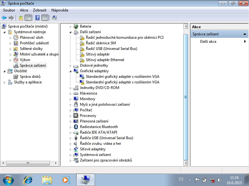 Takhle to dopadne, kdyz se instaluji Windows 7 z DVD a ne z instalacniho disku od vyrobce nebo zalozniho oddilu, kde jsou vsechny ovladace.