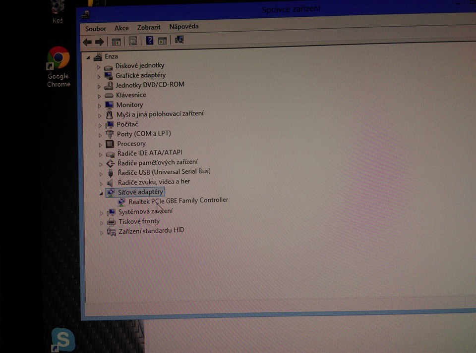 Udelej na tom novem pocitaci screenshot ze spravce zarizeni s rozbalenim polozky sitove adaptery.