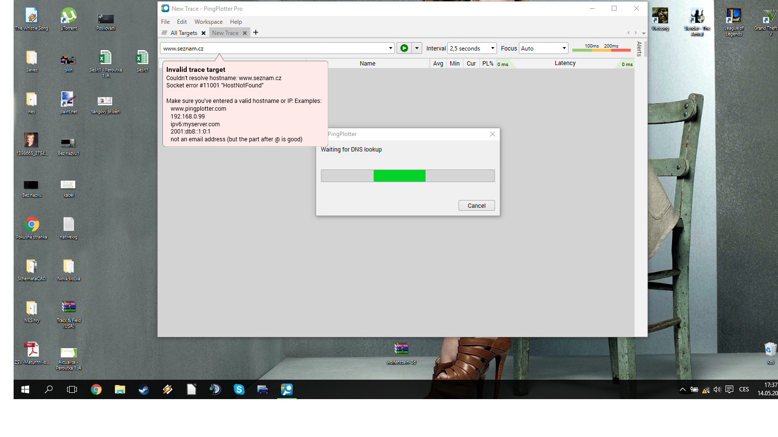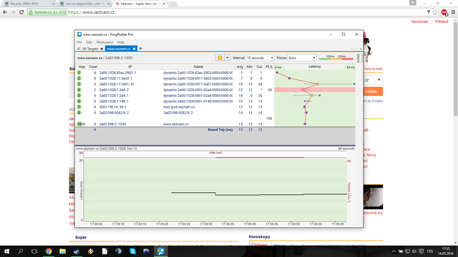 OK. Vmém podpisu najdeš návod na diagnostiku sítě. Tamtéž je i odkaz na pingplotter. Stáhni jej, nainstaluj, zkus na seznam jak přes kabel, tak přes wifi. Screeny vlož sem.