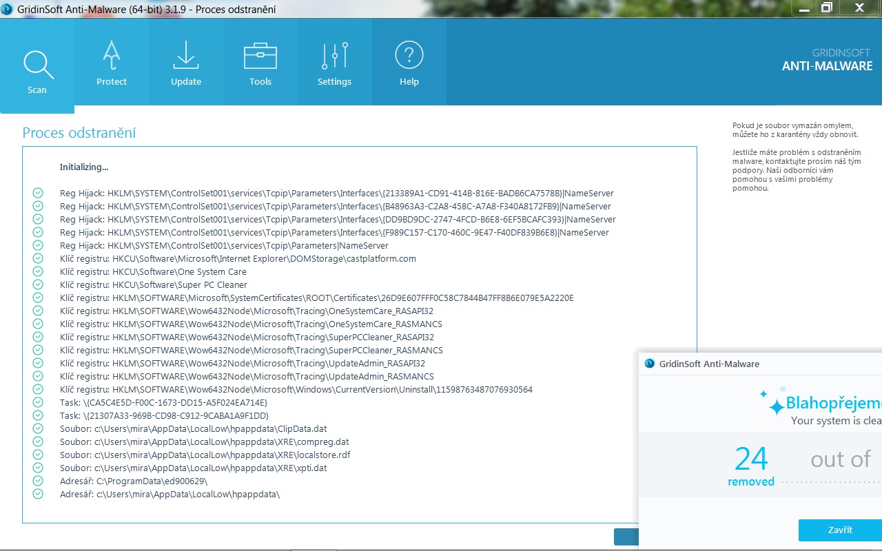 U mého otce na ntb Dell LATITUDE E6410 s Win7 Prof. 64bit. jsem po instalaci Gridin Soft Anti Malware našel 24 hrozeb.