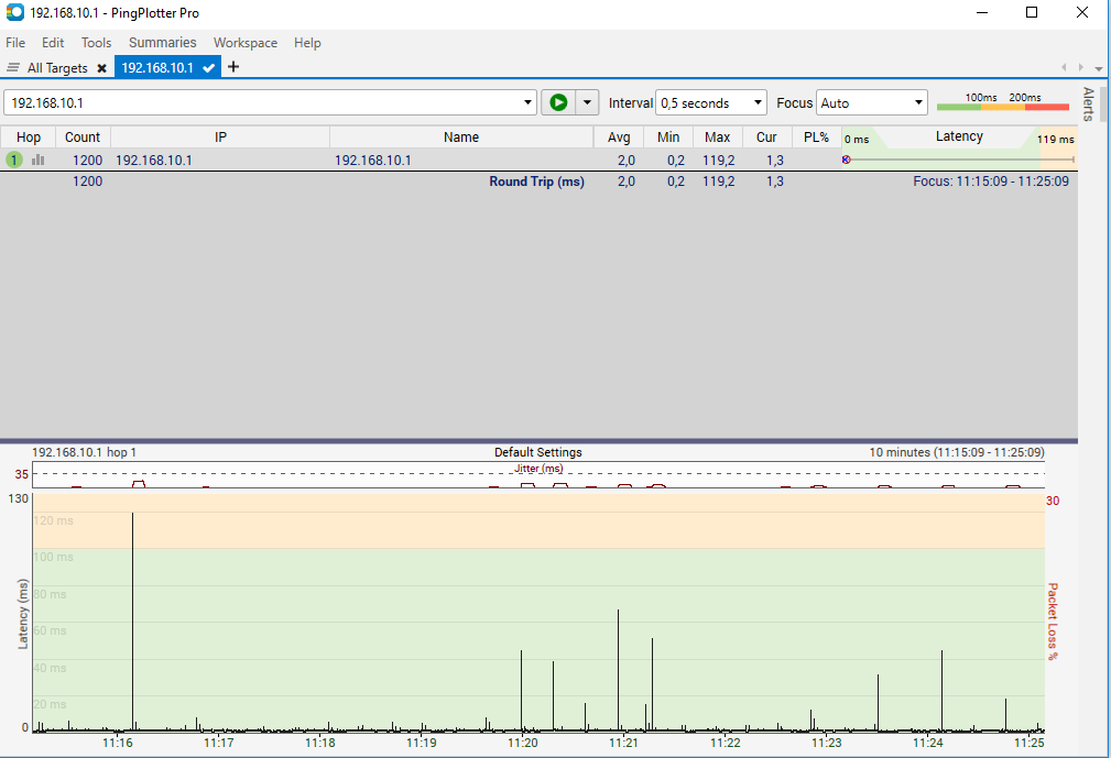 Bohužel i přesto je odezva mezi modemem a laptopem vysoká a podle toho se odvíjí i zbytek viz obrázek.