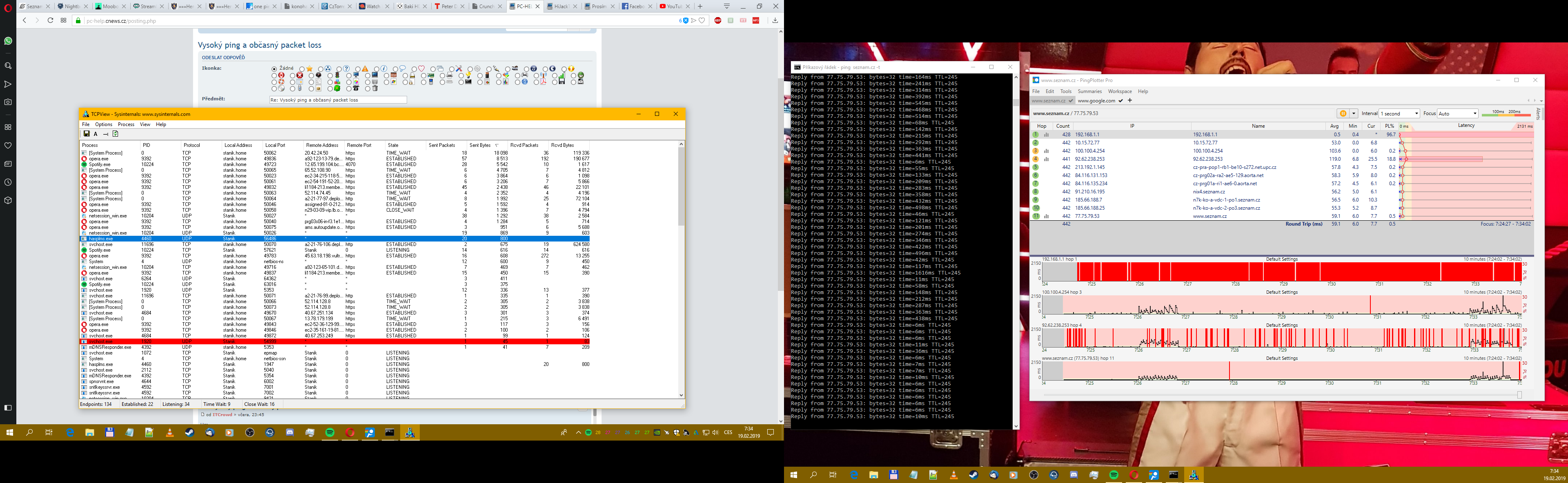 2. snímek akorát během psaní se zvýšil ping a nestihl jsem určit, jaký problem by to mohl být.Ani na jeden [system process] nešlo zobrazit detaily.