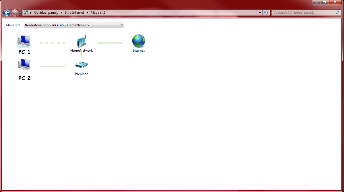 Na PC1 musí být samozřejmě nainstalováno sdílení souborů a tiskáren.