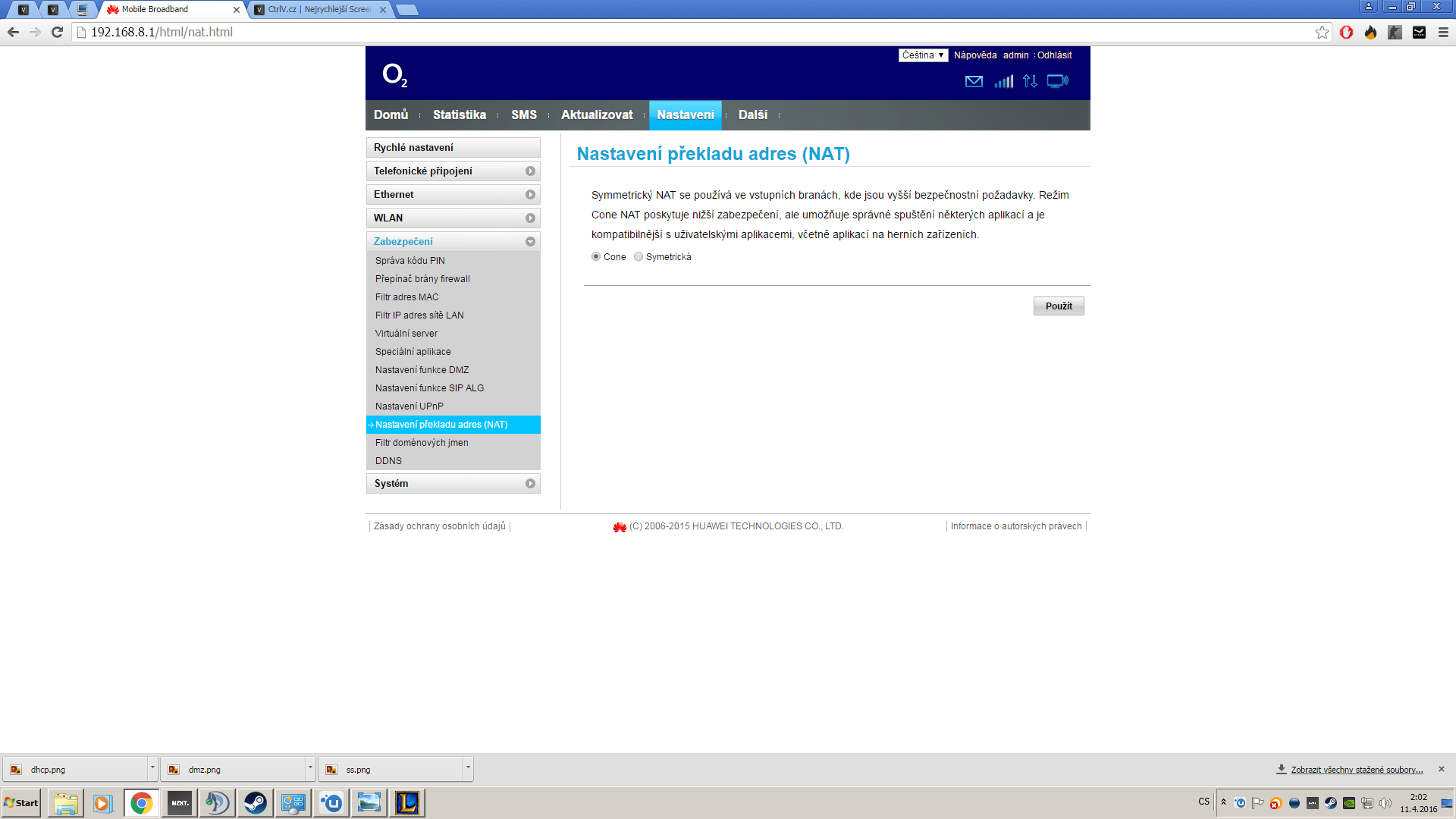 no na poslednim screenu je videt,že mám to staré wifcom (v pravo) zařízení odpojené a nefungujeto.A zeptám se ta zkratka NAT má nejaký specialni odborný název ,nebo je prostě mám požádat ,že chci změnit NAT na volnou a že ji mám striktní ???děkuji