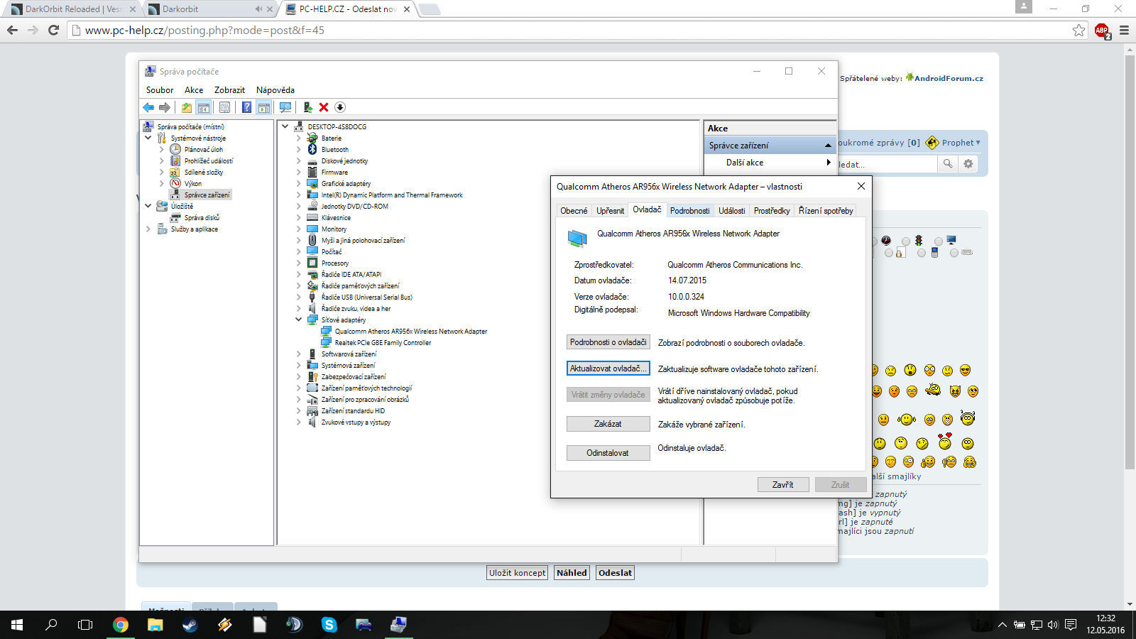 Zdravím, od soboty mi přestala jít Wifina na notebooku. Když se připojím kabelem, tak internet normálně jde. Přikládám screen ze správce zařízení.