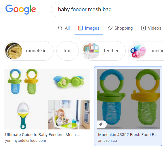 Udělám tedy to, že "baby feeder mesh bag" zadám do obrázků Google: vyjede mi třeba toto: