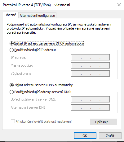 • Výběr internetové připojení