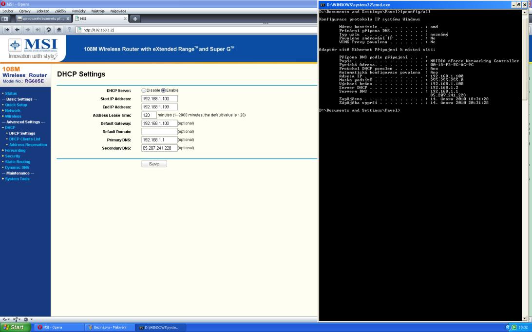 potřeboval bych poradit co mám nastavit na wifirouteru aby mi sel internet.Mám modem od Dlink a wifirouter od MSI RG60SE.Internet mam ADSL přes PPPoE. Když modem propojím rovnou s PC tak internet funguje perfect ale když propojím modem do Wifi a z wifi do PC tak internet nejde. Zkousel jsem nastavit na wifi v záložce WAN PPPoE ale bez uspechu. Tak kdyby mi někdo poradil byl bych mu nesmírně vděčný. Pokud budou potřeba doplňující info, rád doplním. Díky