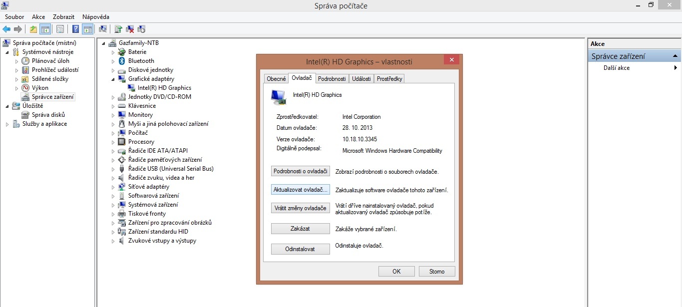 Pokud je novější verze ovladače, stáhnout a nainstalovat. Nainstalována bude jen jedna verze ovladače. Při případných problémech lze vrátit starší verzi zpět.