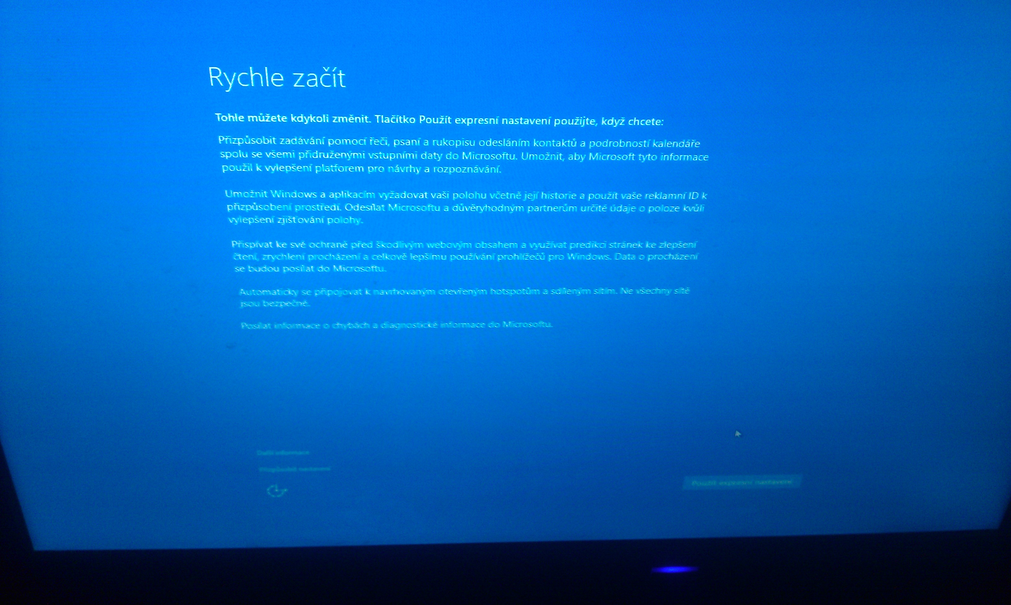 a uz jen zbývalo zadat jazyk tak jsem vše žádal a dal jsem další a pak použít expresní nastavení a načítalo se to a restartovalo a zase mi tam hodilo si vybrat jazyk a takhle to jelo pořád dál vždy se to restartovalo a dalo na výběr jazyk tak budu rád za všechny rady