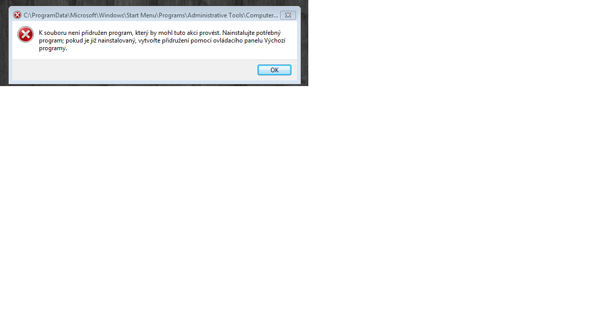 chtěl bych poprosit o radu, když kliknu pravým na PC a dám spravovat, tak na mě vyskočí hláška (K souboru není přidružen program, který by mohl tuto akci provést. Nainstalujte potřebný program, pokud je již nainstalovaný, vytvořte přidružení pomocí ovládacího panelu Výchozí programy.)viz obrázek, víte někdo jak z toho ven ? Děkuji.