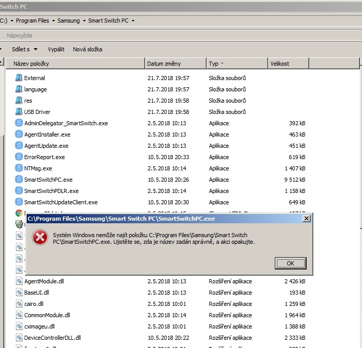 K tomu je učený Smart Switch PC nebo dříve Kies, který též nejde spustit