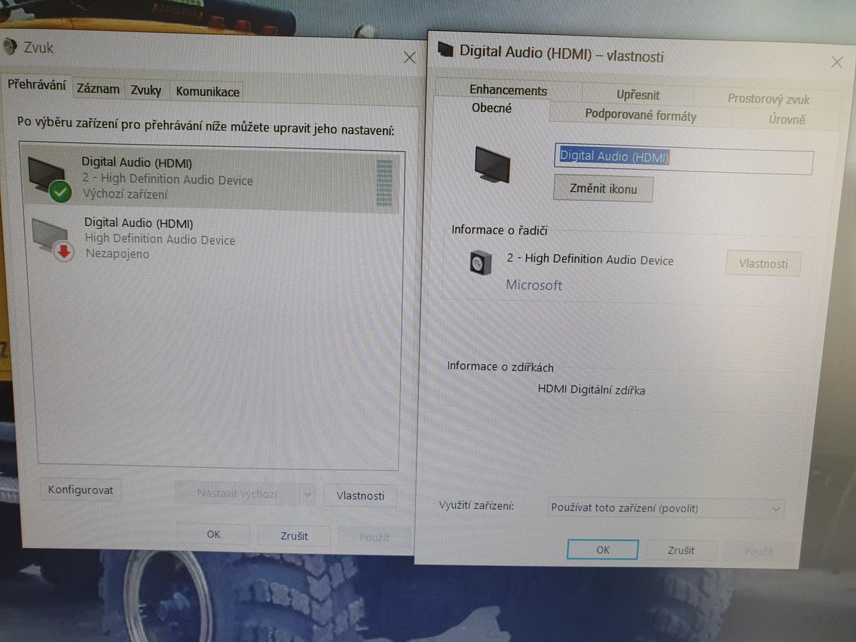 Když kliknu na symbol reproduktoru, tak tam vidím HDMI audio. Já mám však připojeny reproduktory standardně do 3,5mm zdířky.