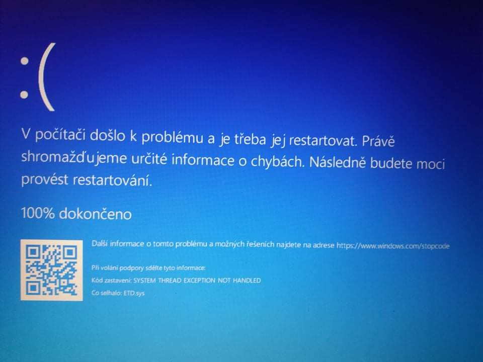 ten crash na fotce se odehral nekde v ovladaci touchpadu, zkus vyfotit dalsi crash, pokud to bude opet ETD.sys, hledal bych timhle smerem.