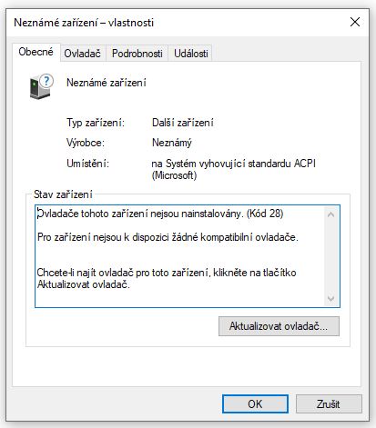 S tímto ovladačem se nainstaloval i ovladač pro "Neznámé zařízení".