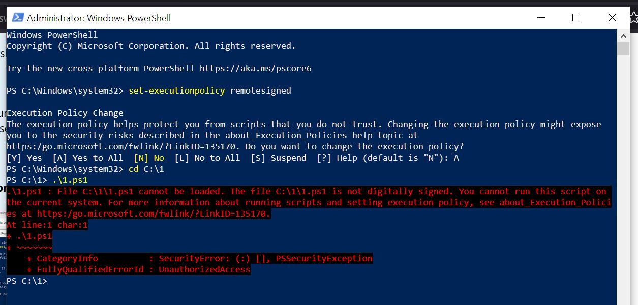 Pokud je potreba aby ps1 byl podepsany ke spusteni, tak bych ocekaval ze se to u nepodepsaneho ps1 musi vypnout.