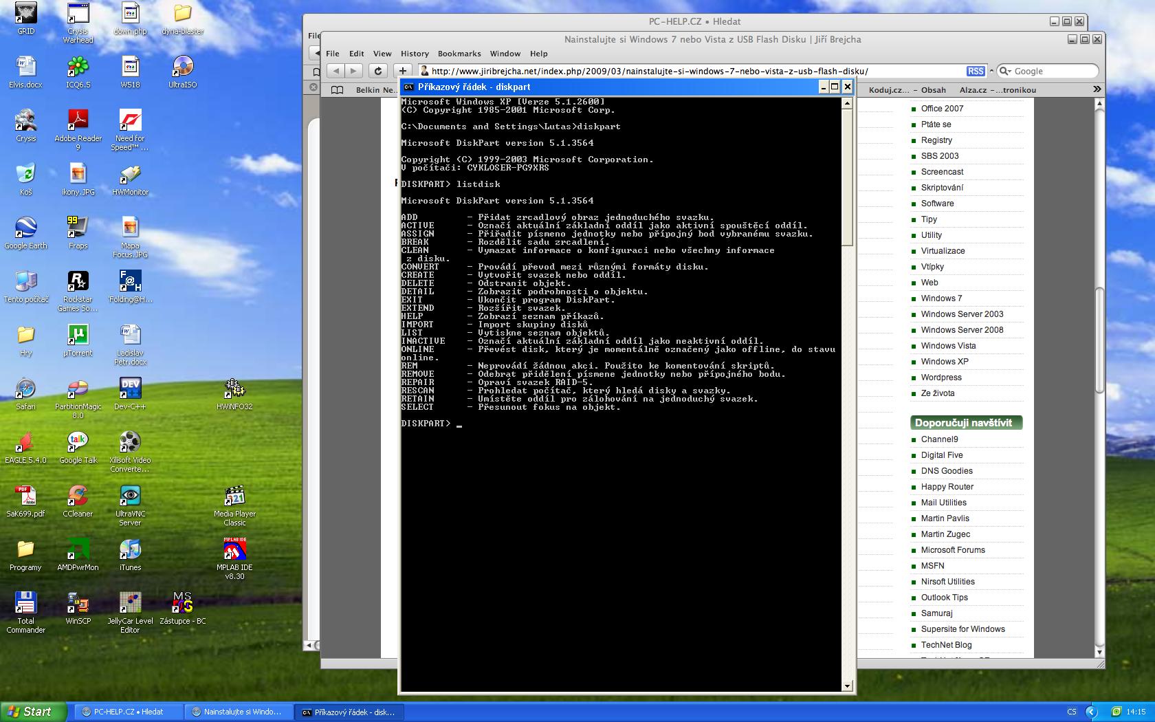 Taky řeším tenhle problém, vše sem dělal podle návdu ale v příkazovém řádku se mi zobrazil jen jeden disk, ikdyž je FLASHka připojená a PC jí vidí.