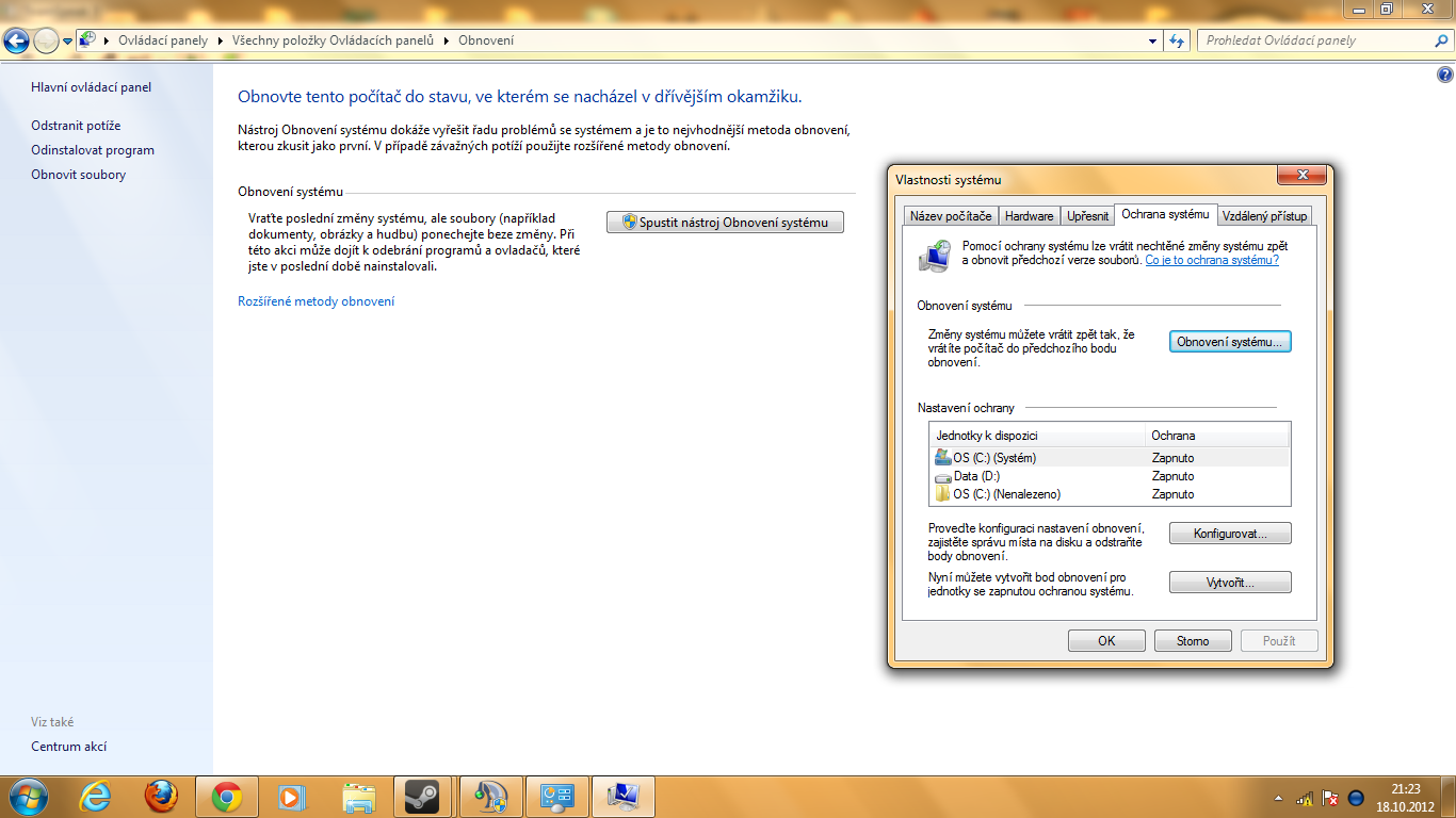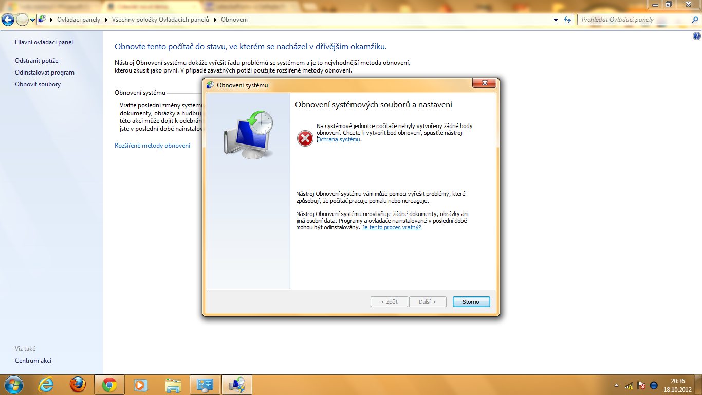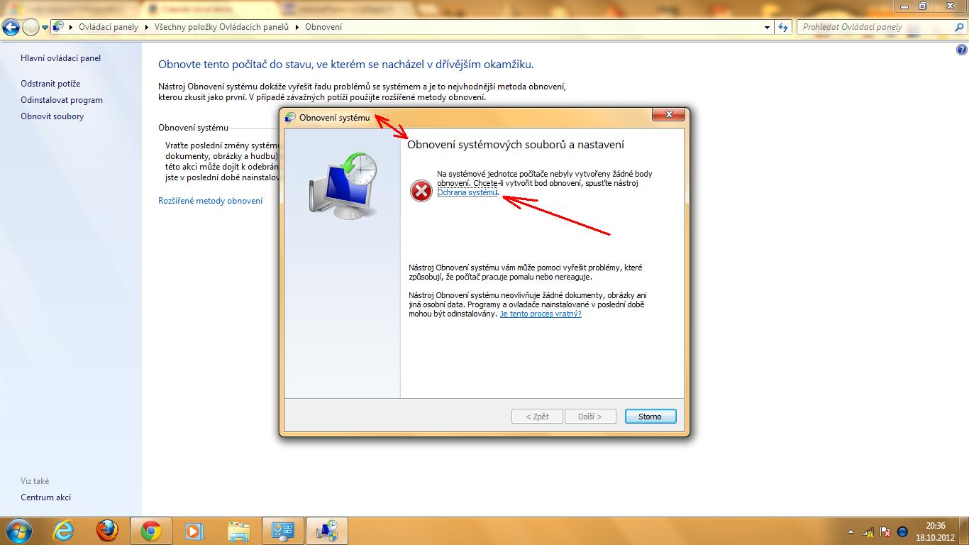 K problému: Asi jsem slepý ale mám otevřeny Ovládací panely - Systém ale obnovení systému tam nevidím.