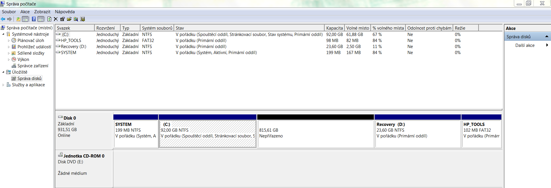 jo, to vidím, že tam mám 815GB nepřiřazených.
