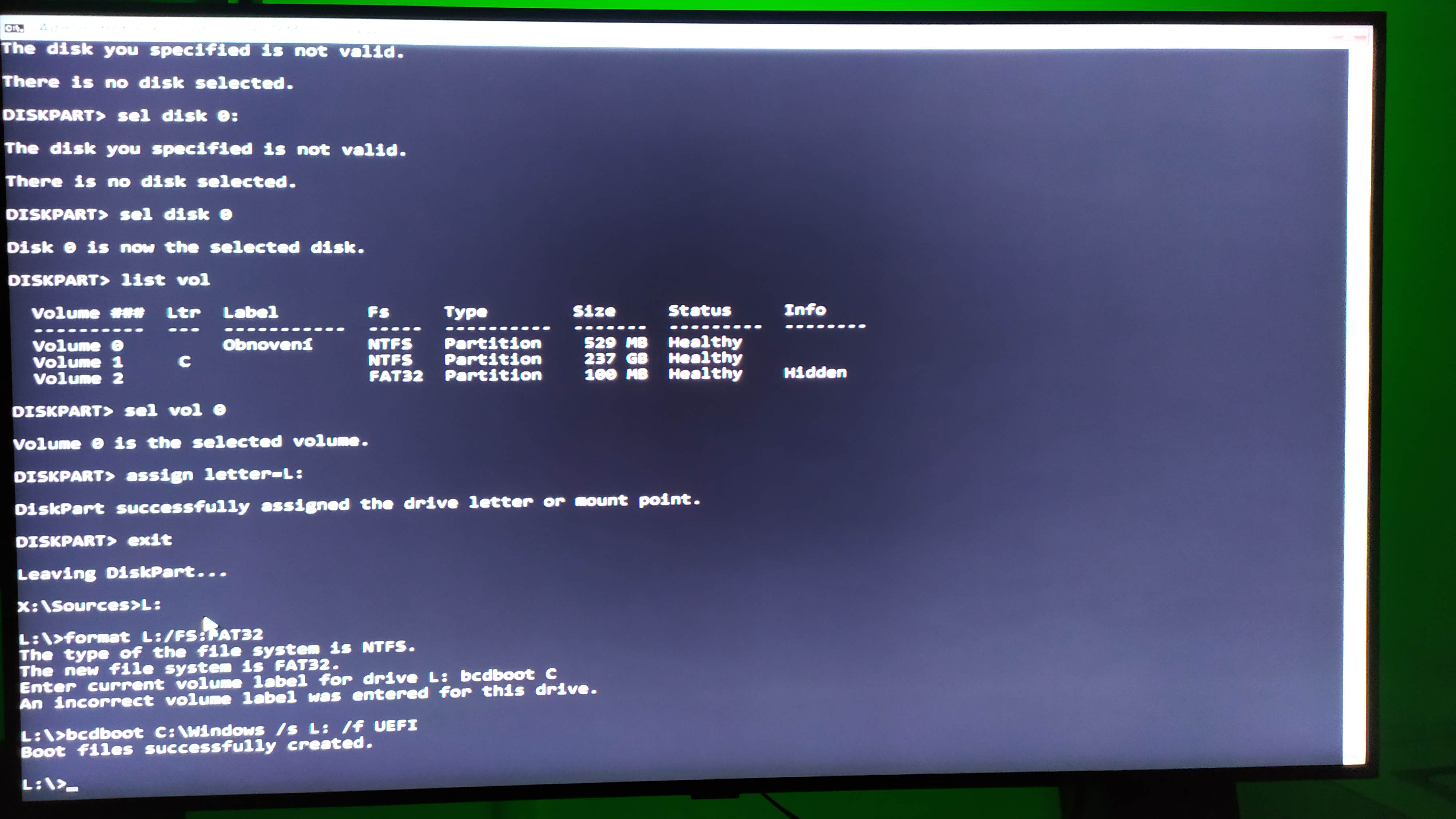 Ok takže rozjezdu instalaci win pak rozjezdu příkazový řádek a udělám to samé jen musím dát volume tam. Kde je FAT32..