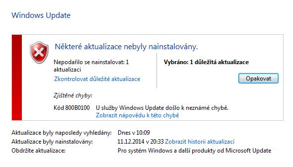mám windows 7 a nedaří se mi nainstalovat jedna aktualizace , ať dělám co dělám nevím jak na to.