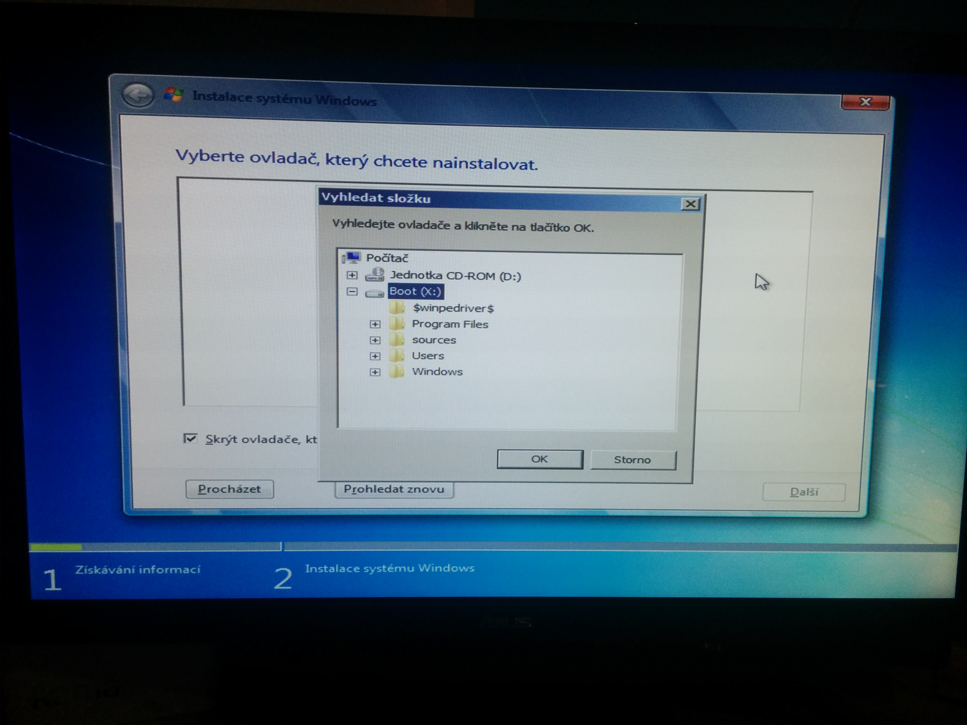 Instalují si Windows 7 home premium z USB, ale narazil jsem na problém...
