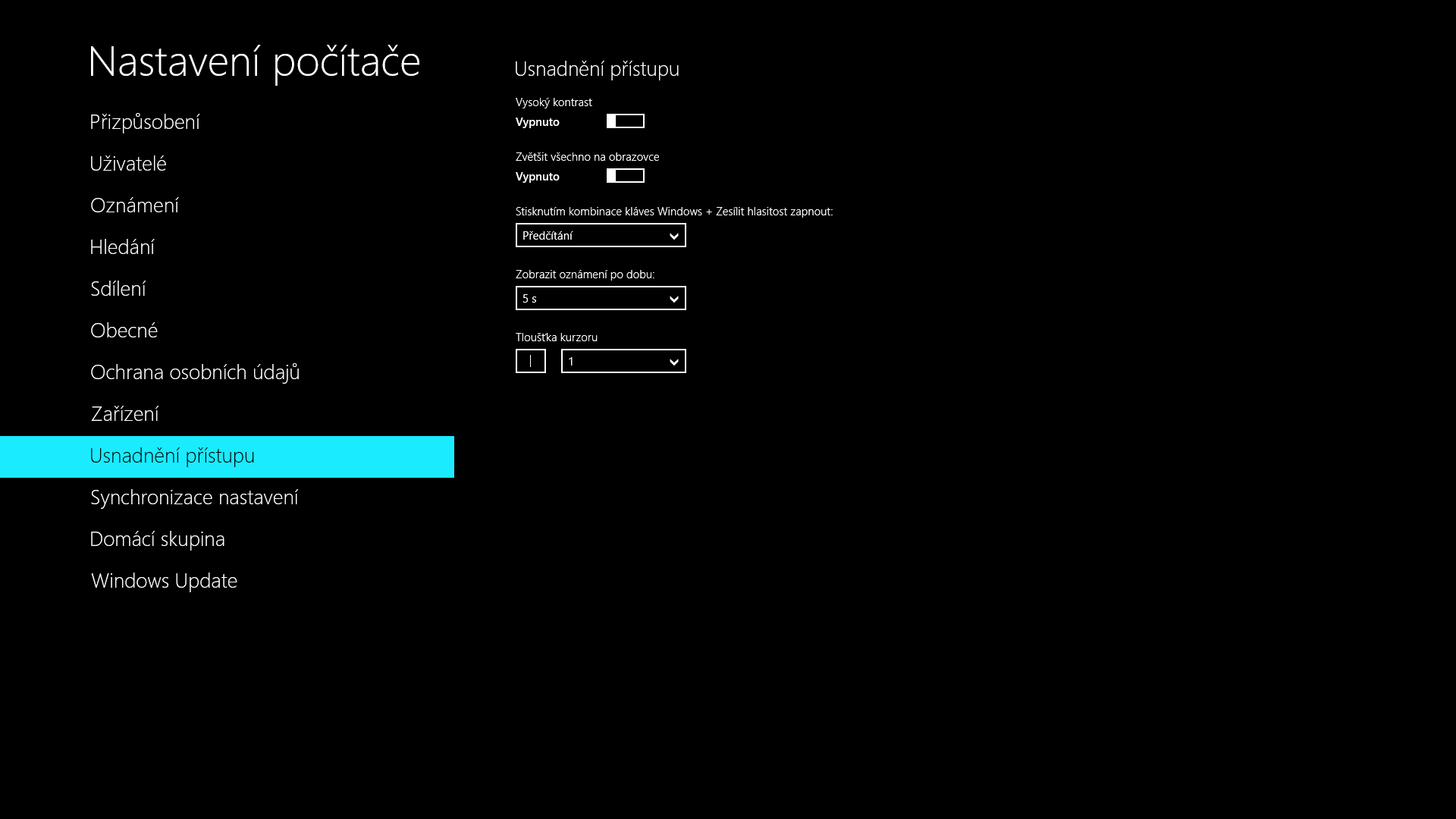Dobrý den...po půl hodině hledání jsem se sem konečně dostal...mám problém...mám nově přeinstalovaný win 8... ( kvůli ovladačům grafické karty ).. a zapl jsem si možnost vysoký kontrast...v momentální době mi z nějákého nepochopitelného důvodu nejde vypnout...nevíte co mám dělat...jak si můžete všimnout...tak i přes vypnutí je vysoký kontrast zapnutý...předem děkuji na odpověď :)