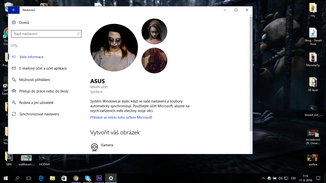Také zmiňované nastavení účtů. V tomto případě se jen změnili složky. Například u Klasické OS 10 Jste měli jen pouze záložku Přístup do práce. Při nové verzi máte Přístup do práce, a do školy. Také v tomto nastavené proběhlo pár změn. A to je taky že vidíte konečně ikony. Ke každé záložce je přidána vlastní ikonka. Viz příloha.