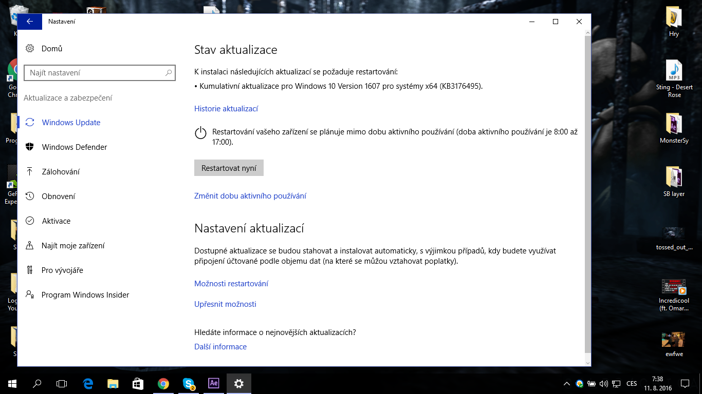 Děkuji. A omlouvám se za češtinu :-D . Trochu ještě příspěvek doladím. Mno možná již tam máš aktualizace anniversary. Mně již na vedlejším PC se taky aktualizuje. Ale podle všeho si na tu aktualizaci stěžují. že zamrzává a různé problémy dělá. Ale mně zatím ještě nic takového neudělala :-D . Takže uvidíme zda se něco po delších dnech projeví.