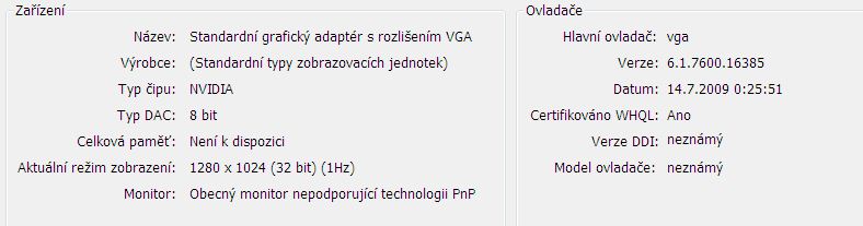 Nemas nainstalovany ovladac na grafickou kartu od vyrobce karty.