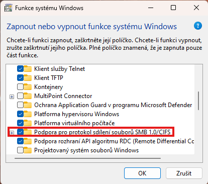 Na Windows zadne SMB1 samozrejmne nezapinat, pokud je to co na obrazku nainstalovane, pryc s tim.
