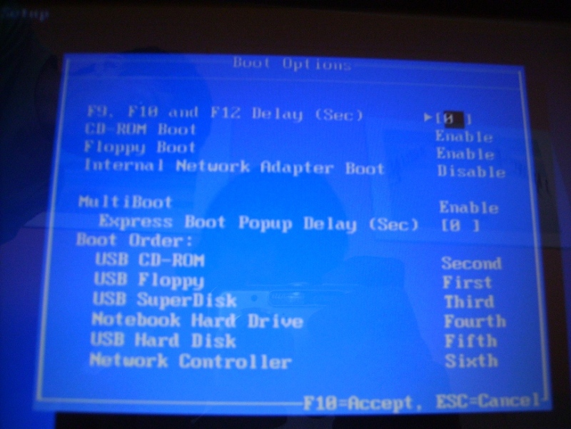 Tak nb už je doma, a mám pár otázek: Když bych chtěl nainstalovat ten systém z flashky, tak v biosu mám nastavit jako first boot device esb floppy disk?