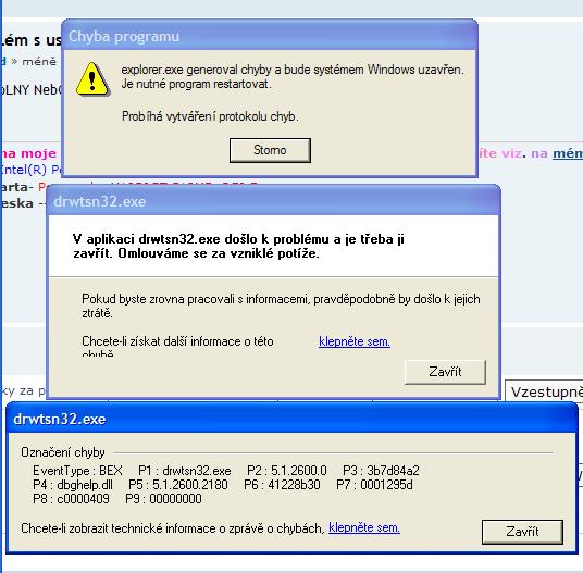 Pokud zvládneš nakonfigurovat Dr.Watsona (http://www.pc-help.cz/viewtopic.php?f=46&t=54355" onclick="window.open(this.href);return false;) a upneš výpis paměti, můžem se na to mrknout. Jaro3 ti určitě mrkne na log.