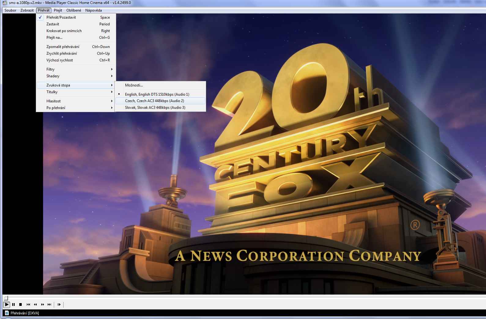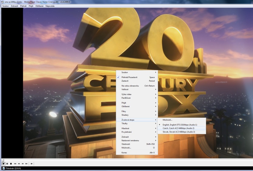 Změna zvukové stopy v Media Playeru Classic HC
