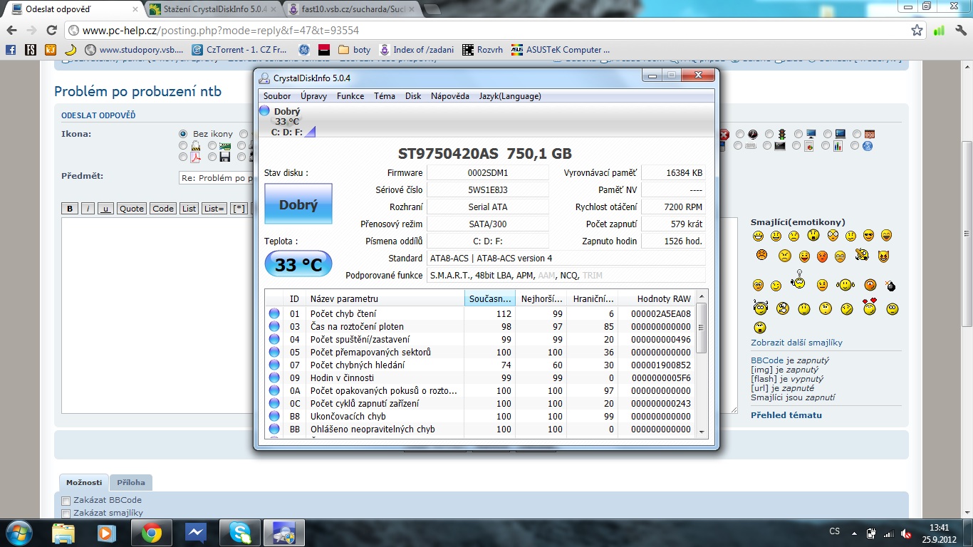 Zkontroluj ten HDD pomocí CDI a dej sem screen.